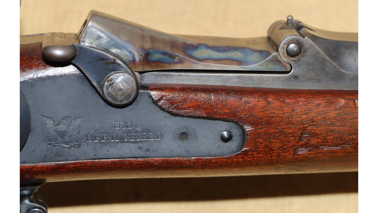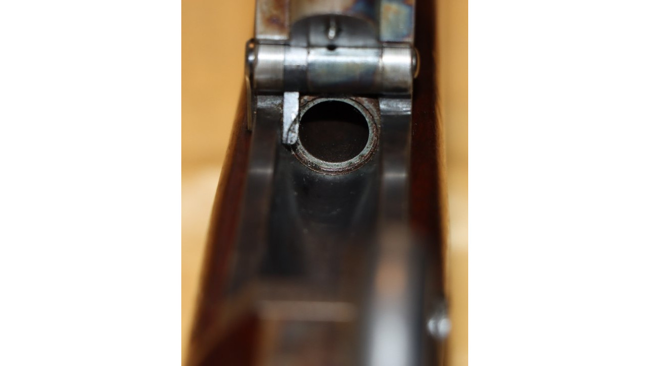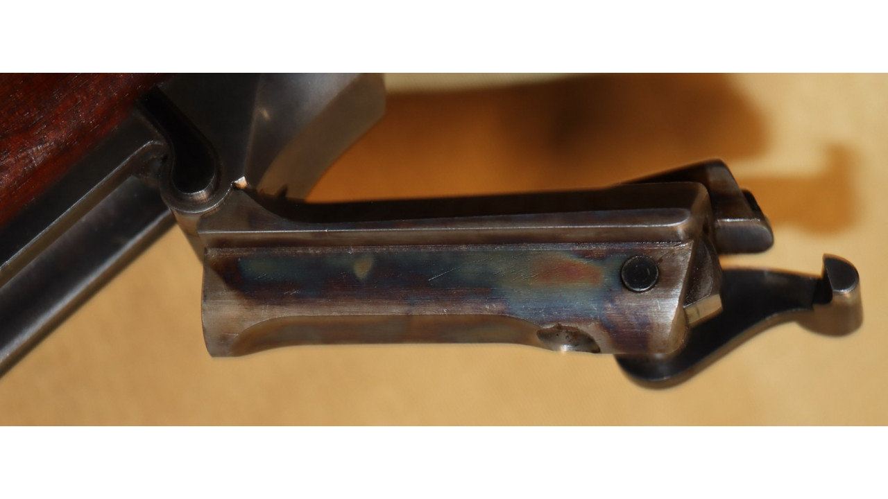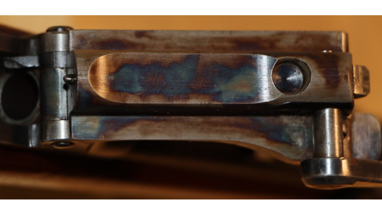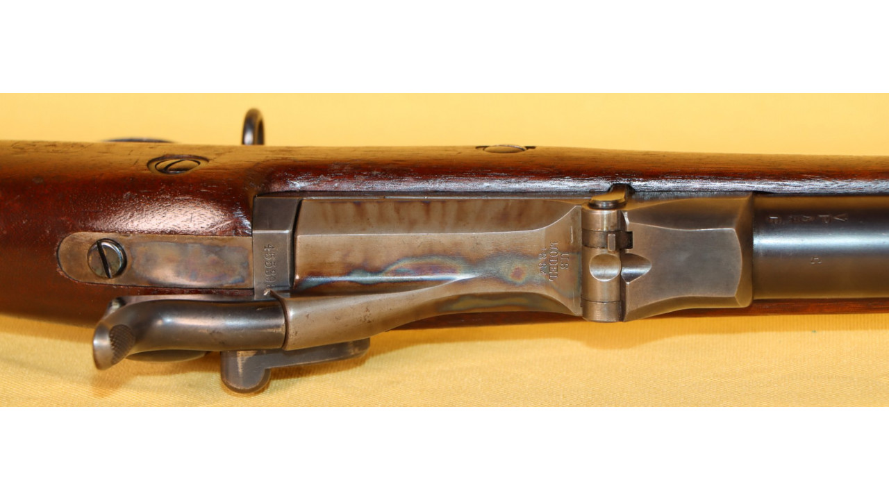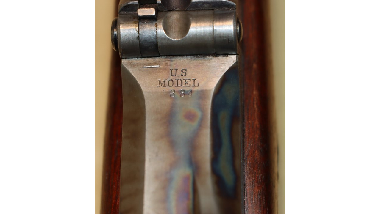The Breech Block is a mint condition Eighth Type that is crisply marked “U.S./MODEL/1884,” adjacent to the hinge point. The Breech Block retains 98% of the original and very vivid color case-hardened finish on the top (external) and interior sides. There is only minor freckling on the top portion. The colors are as sharp internally as the day this rifle was manufactured. The breech face is very clean and also retains virtually all of its original color case-hardened finish.