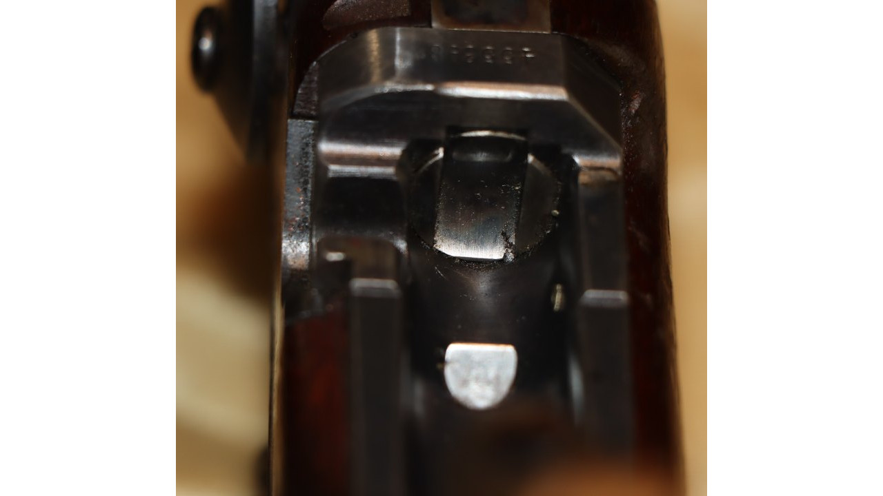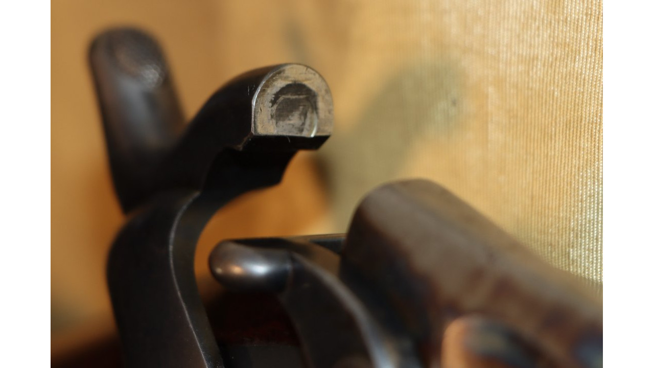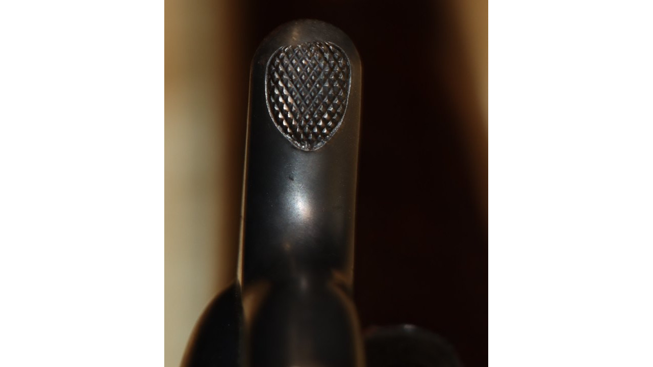 The Cam Latch is the correct Third Type with the unground rivet properly exposed leaving the square-shanked rivet visible. The Cam Latch contains the majority of its original blue finish with minimal wear noted on the sharp edges. The Cam Latch works perfectly, and the breech block is very tight when in battery with no movement noticed. The original firing pin is present with a still sharp, pronounced striker end.