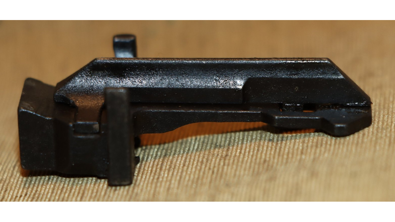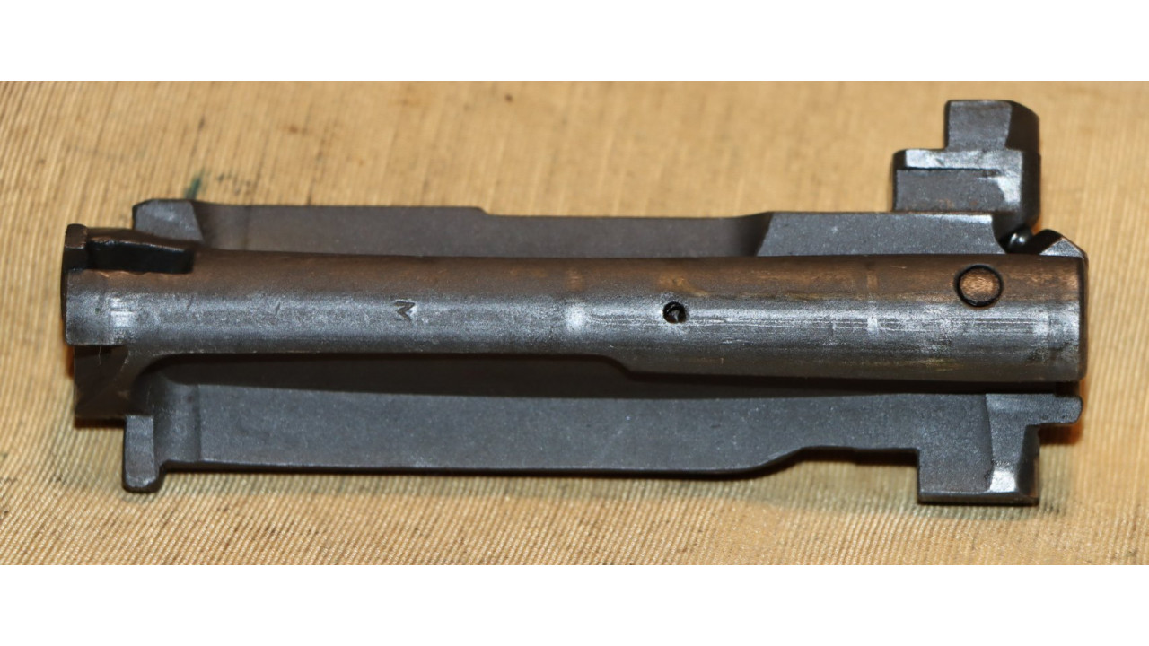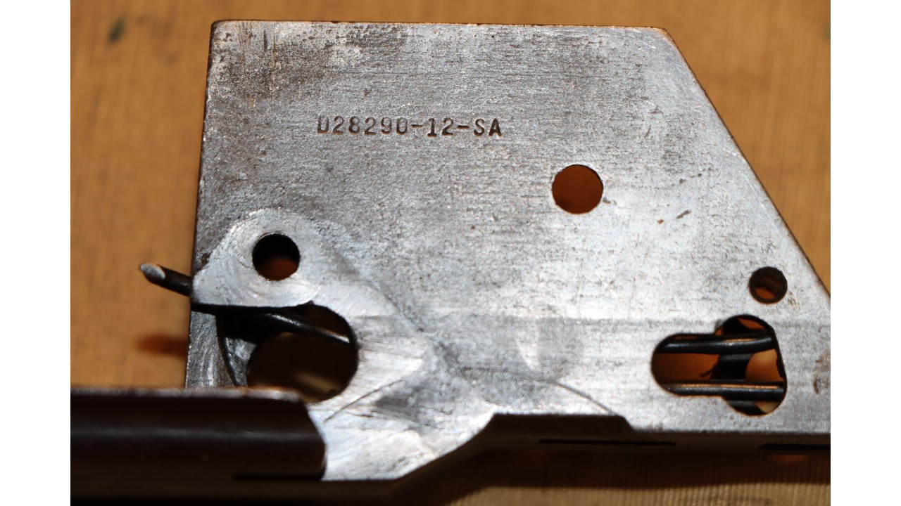 The bullet guide is the correct Springfield milled version without the crescent cuts on the sides at the bends. The bullet guide retains 98% of its original parkerized finish. The follower arm is the correct Springfield no-bevel type with rounded shoulders. The follower arm retains 95% of its parkerized finish with wear noted on the shoulders, on the bottom edge of the follower pins and around the follower rod pins.