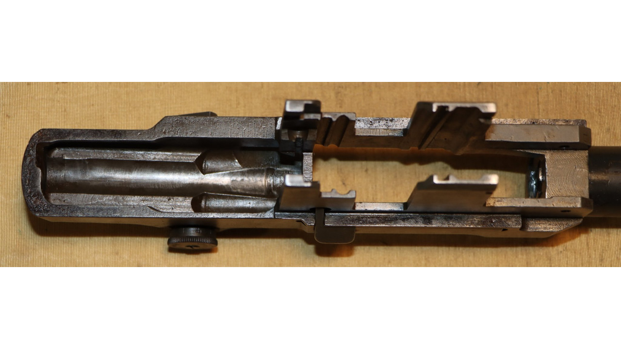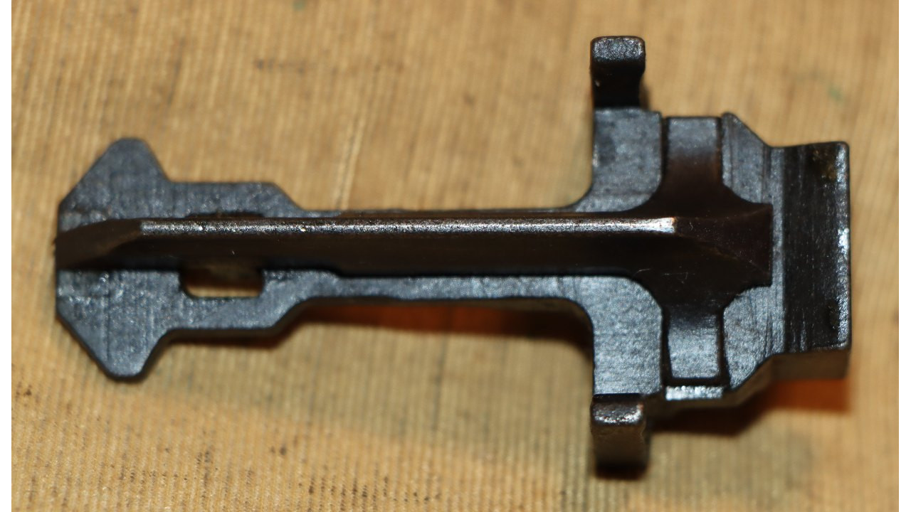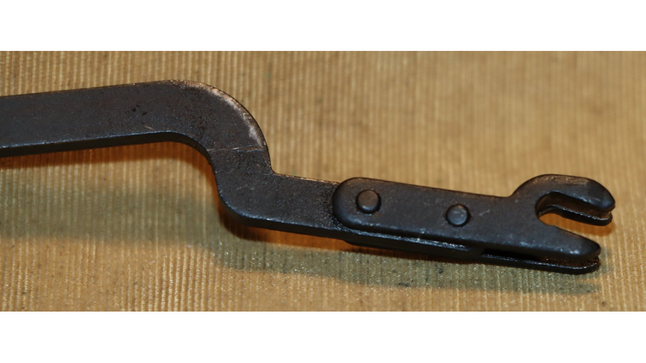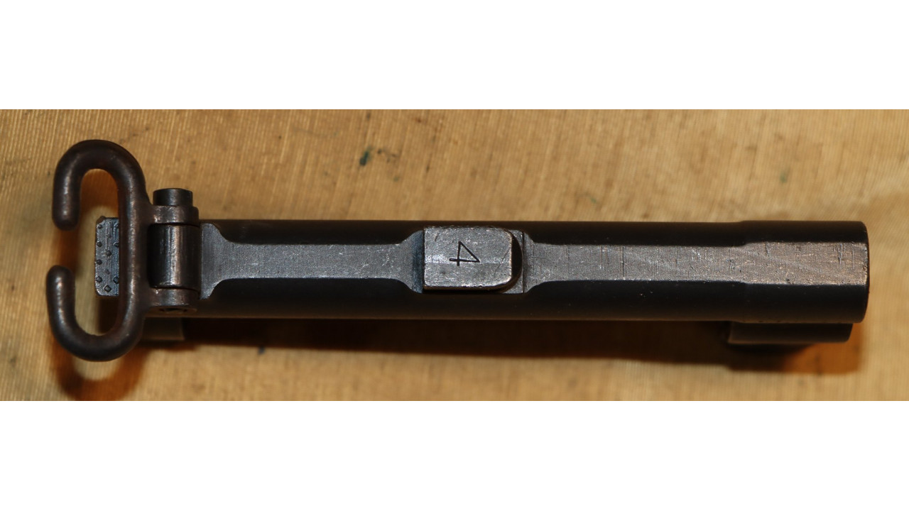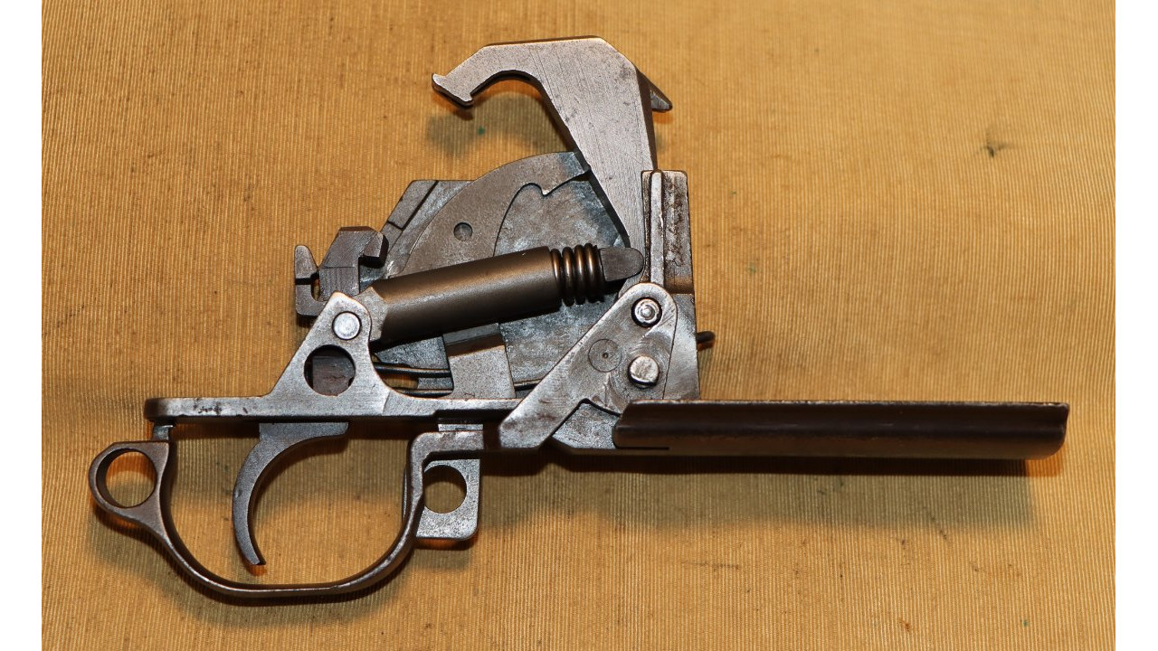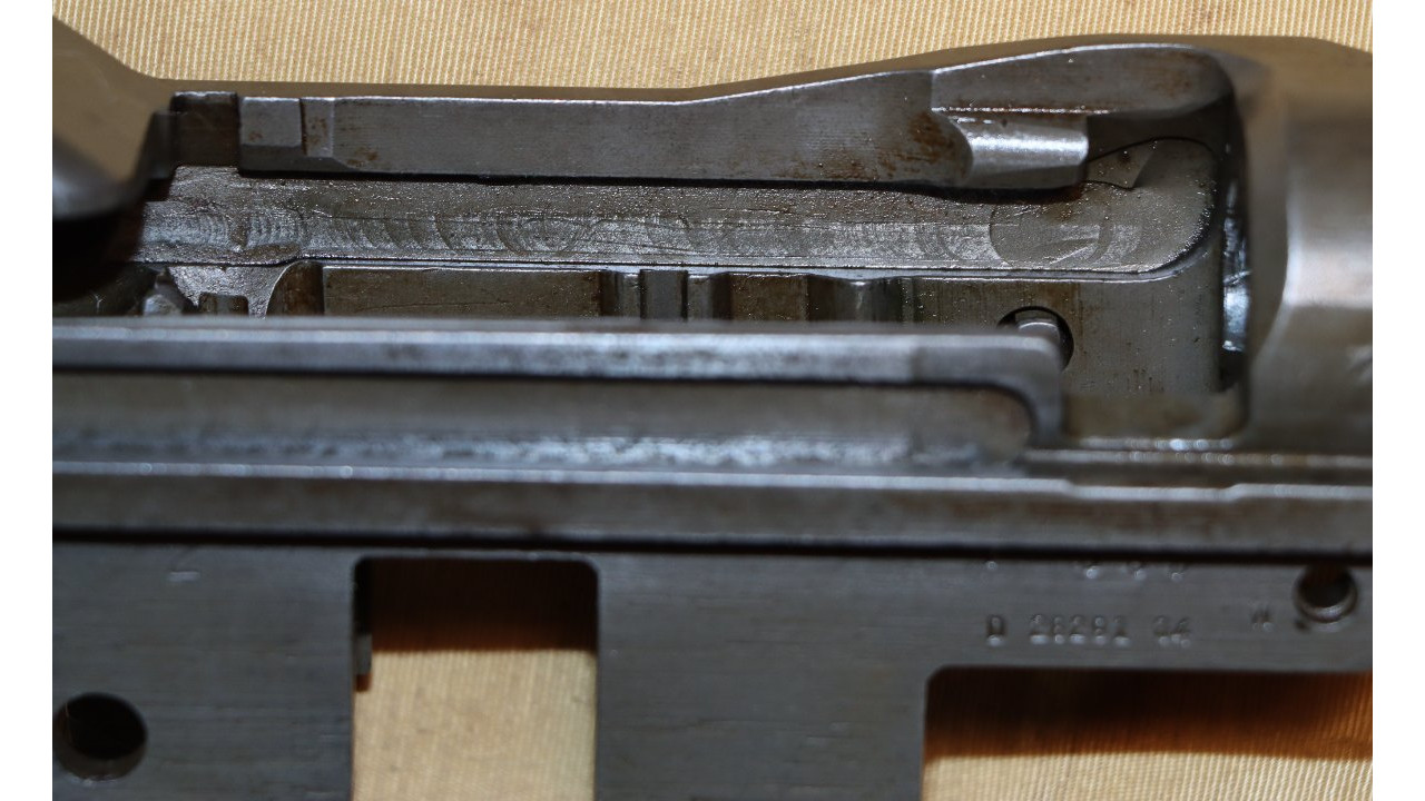 The follower rod is the correct riveted long fork that retains approximately 95% of its parkerized finish with wear noted on the upper arms of the fork and at the bend in the rod where it bisects the operating rod catch. The op rod spring is in excellent condition and remains in the white.