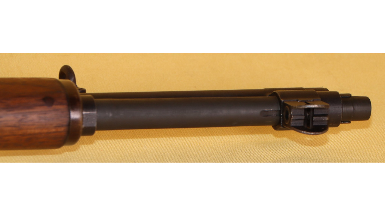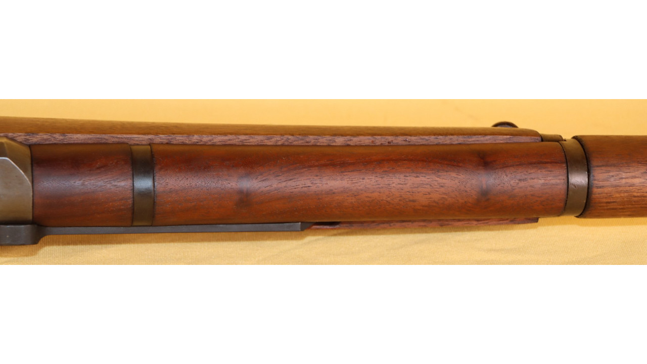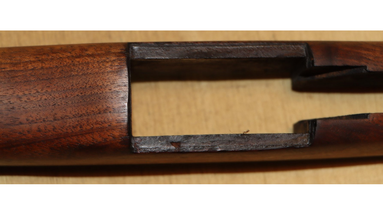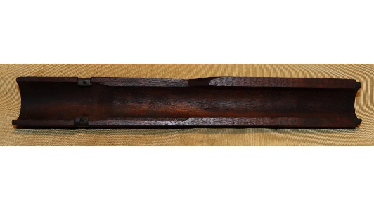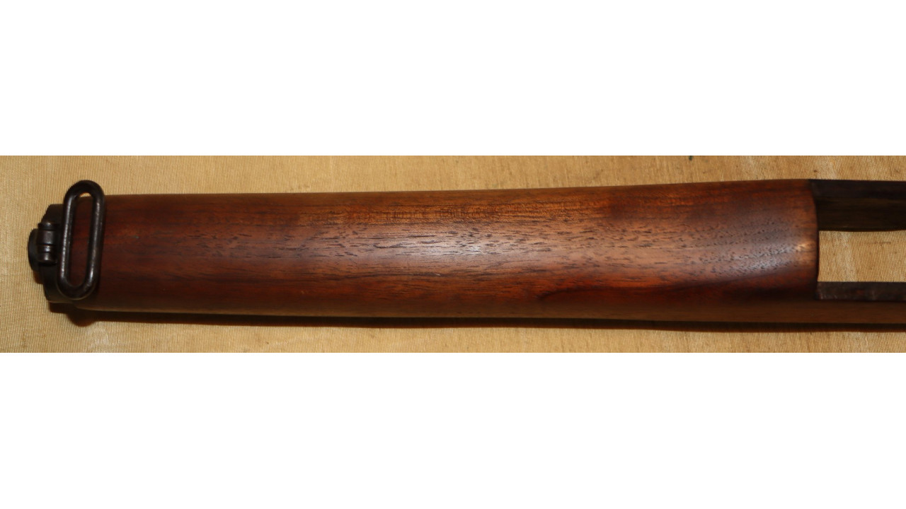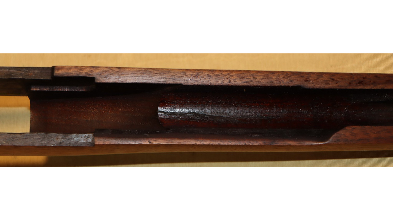 The front hand guard is also in near mint condition and has almost no dings or scratches and no cracks or chips noted. The front hand guard ferrule retains the majority of its original parkerized finish. The front hand guard liner has the correct holes on both ends and the notch at the front.