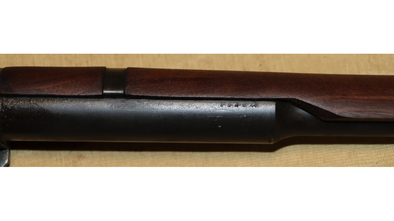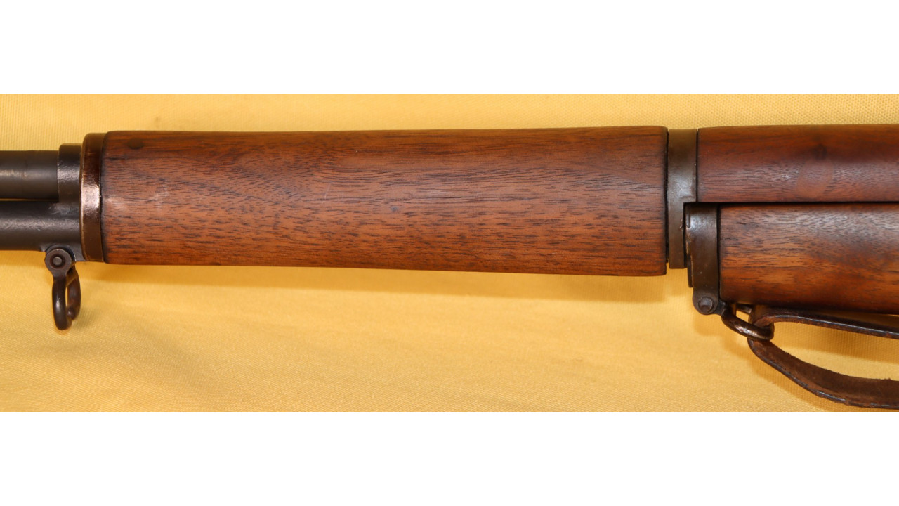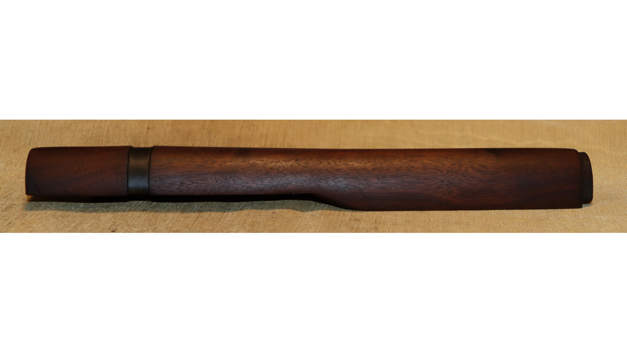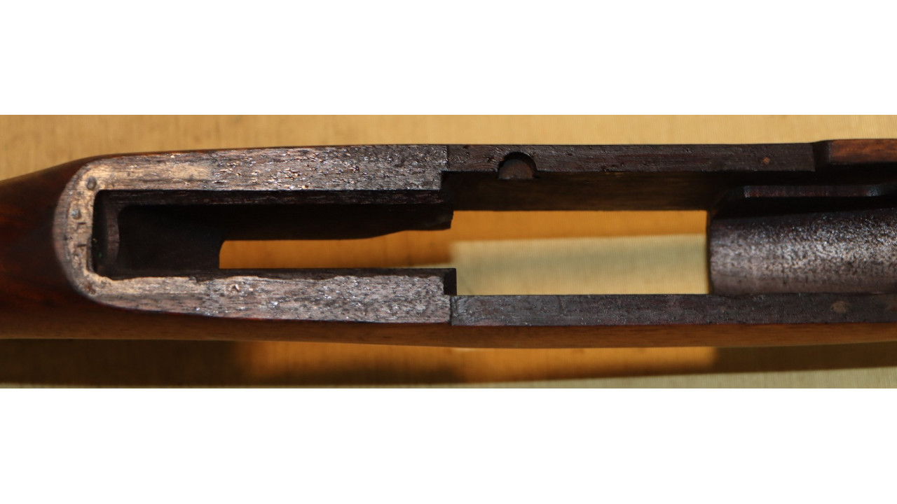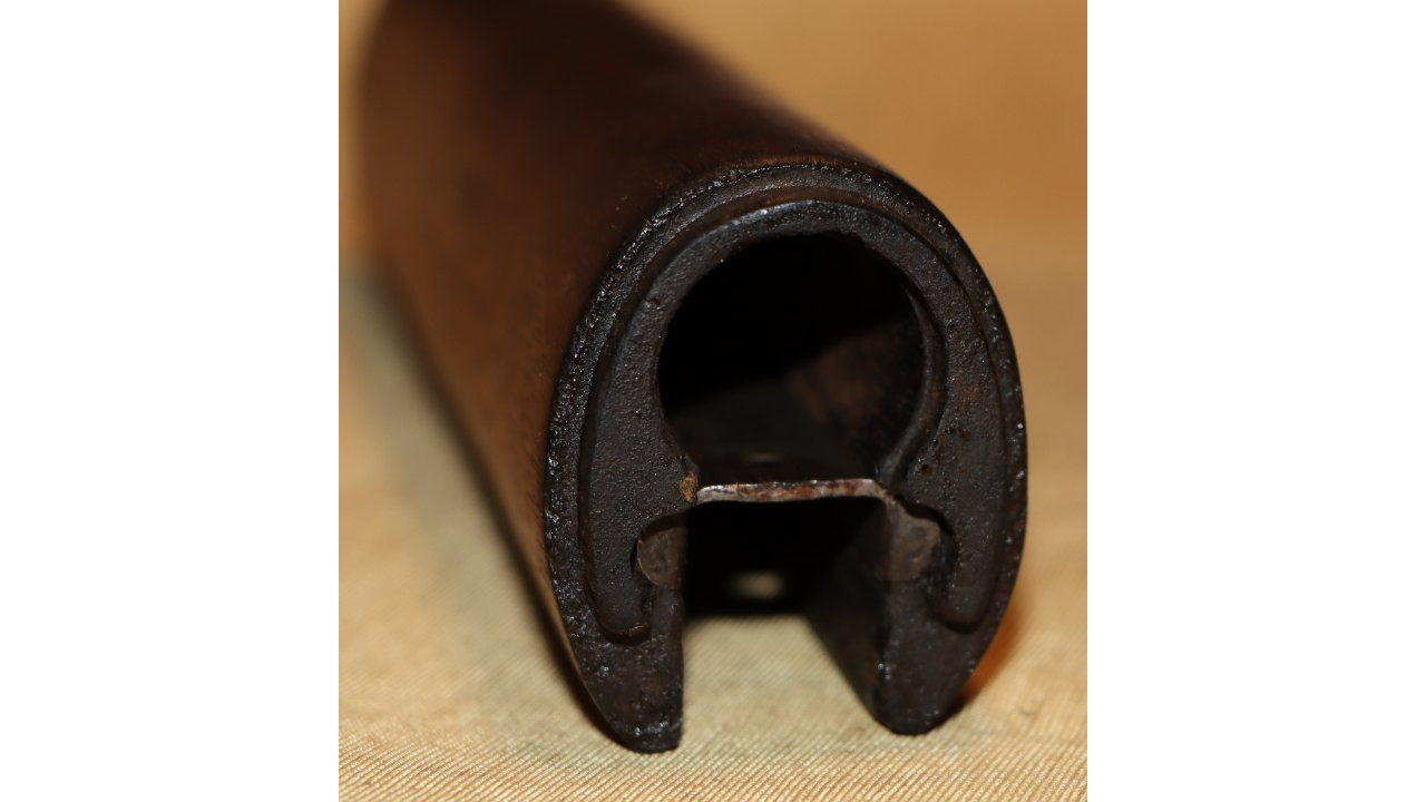 The front hand guard is also in near mint condition and has almost no dings or scratches and no cracks or chips noted. The front hand guard ferrule retains the majority of its original parkerized finish. The front hand guard liner has the correct holes on both ends and the notch at the front.