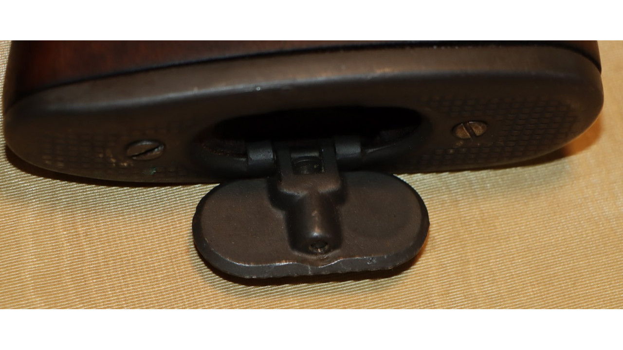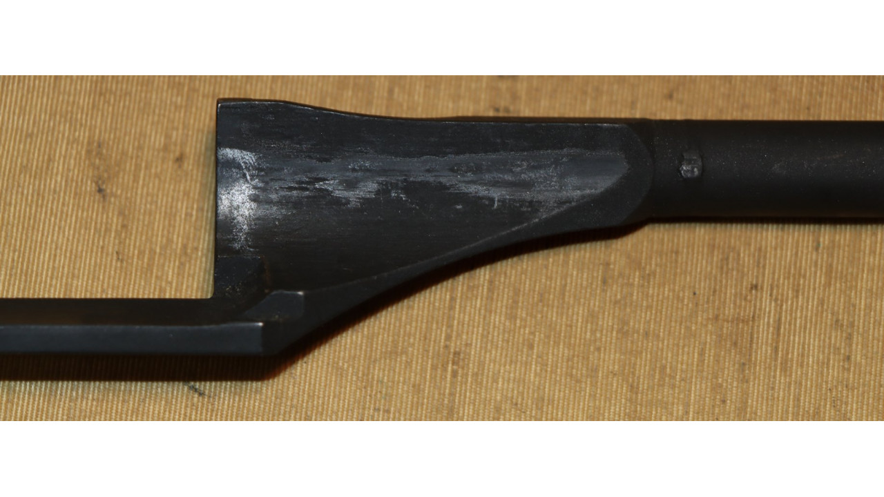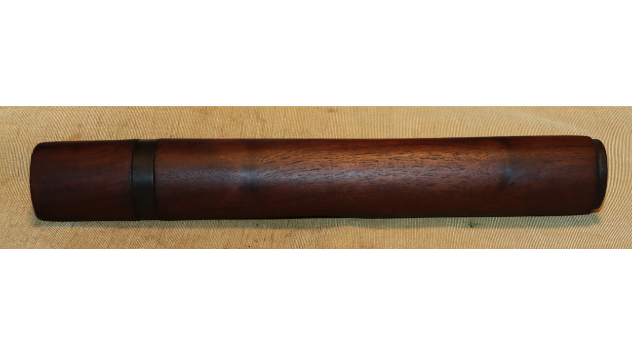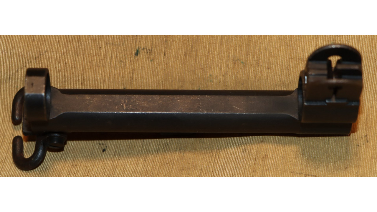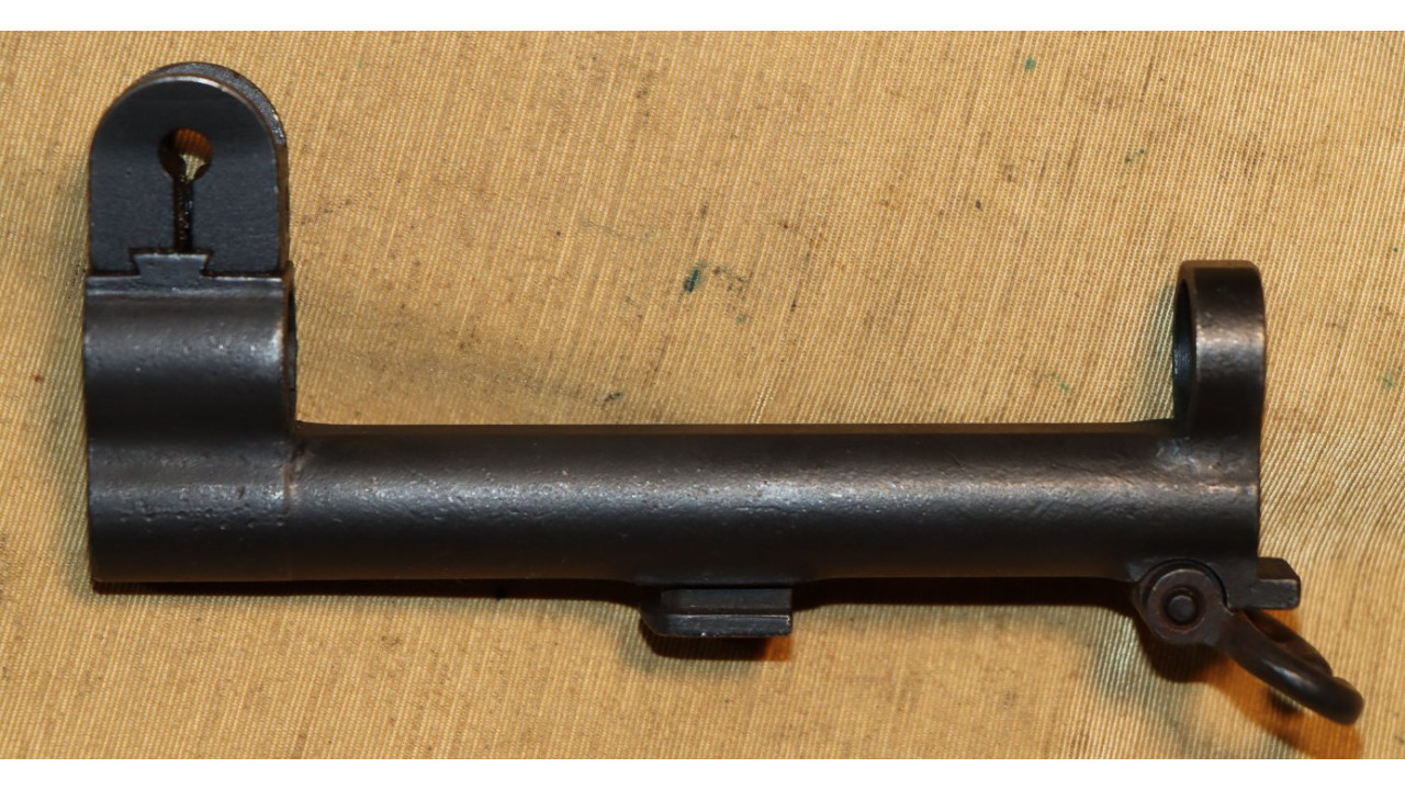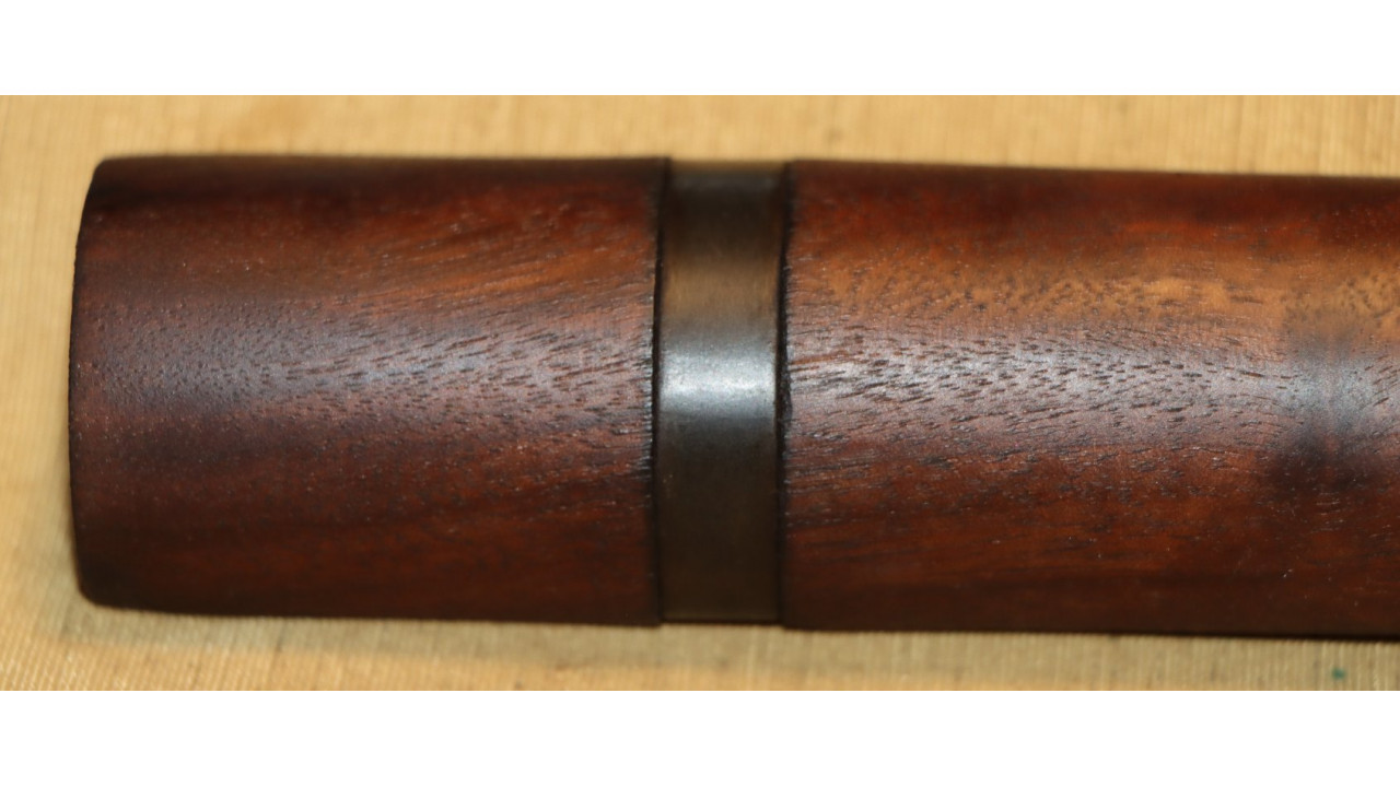 The front hand guard is also in near mint condition and has almost no dings or scratches and no cracks or chips noted. The front hand guard ferrule retains the majority of its original parkerized finish. The front hand guard liner has the correct holes on both ends and the notch at the front.