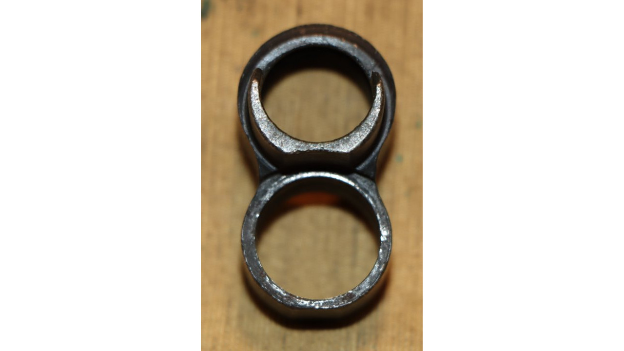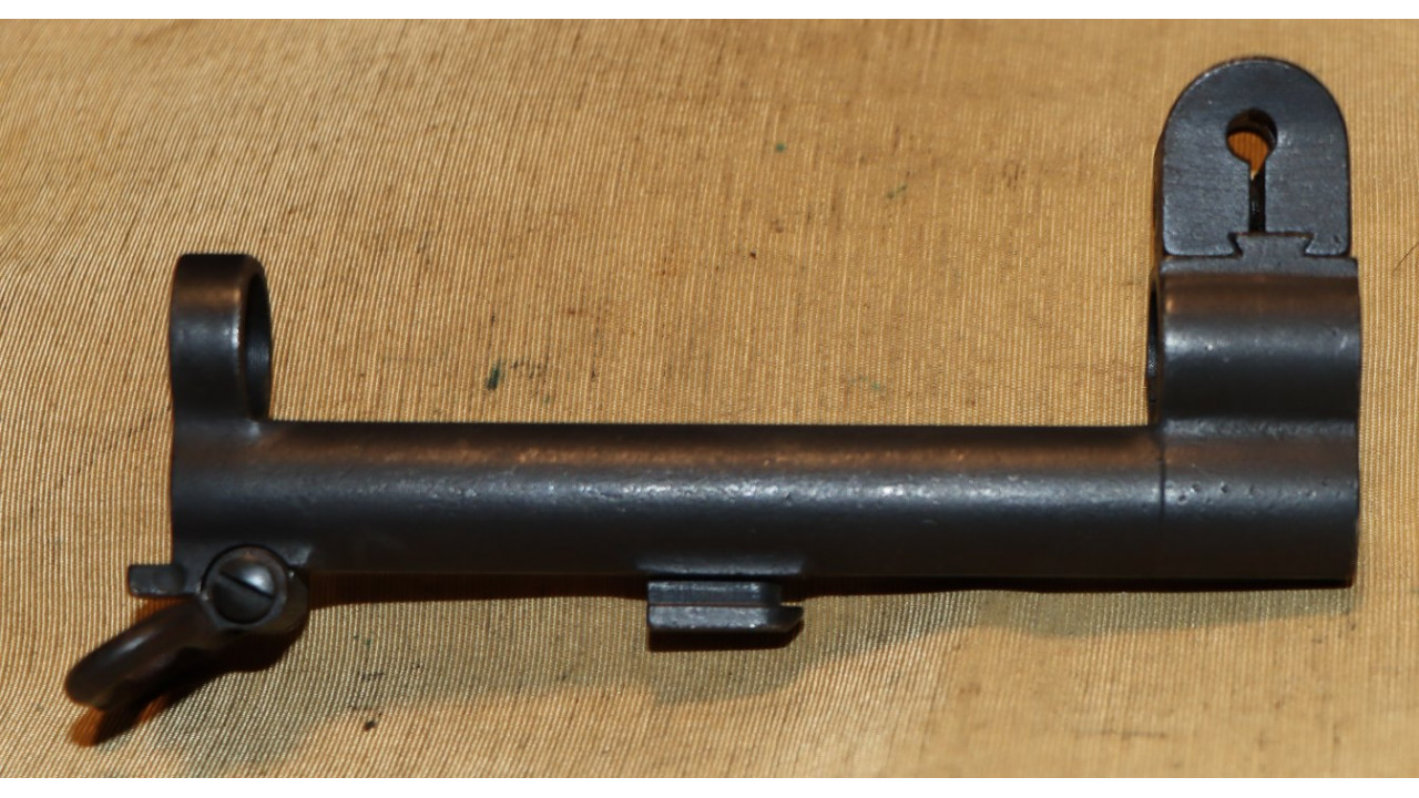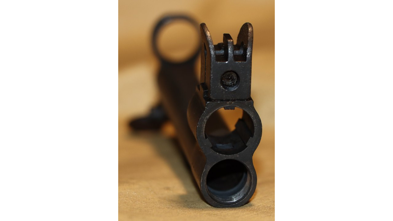 The gas cylinder is the correct Springfield wide front sight base type in very fine condition. The bottom of the bayonet lug has closed-top “4” stamp. It has the correct top flat of the rear barrel ring with a “1” stamp. The threaded end of the stacking swivel screw is center punch staked in place and the screw itself is in fine condition with an unmarred, single-slot head. The stacking swivel retains most of its parkerized finish. The front site is the correct Springfield type that measures approximately .65 inches at the top of the guard wings. The front site screw correctly does not have the rebated head. The gas cylinder retains 98% of its original dark black finish. The internal chambers of the cylinder are also in fine condition with no pitting or noticeable wear on the top chamber and gas hole as well as the bottom, threaded portion. The internal diameter of the cylinder measures .528” with a cylinder gauge.