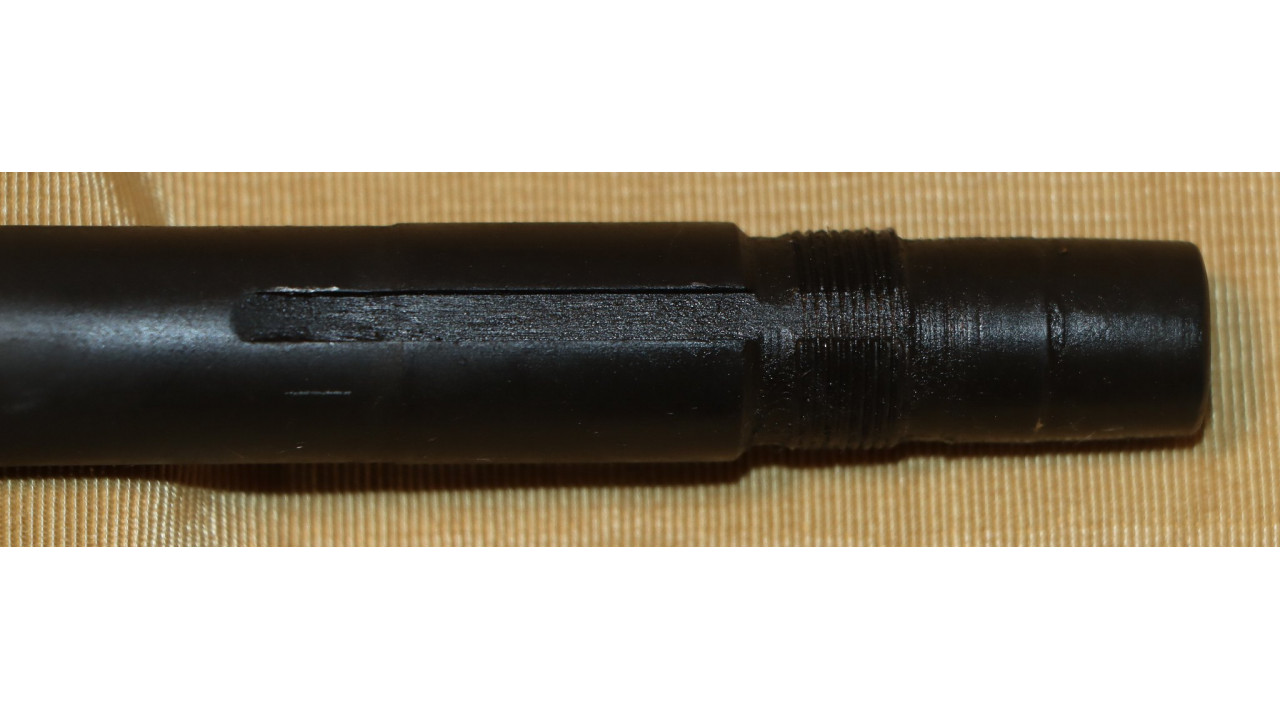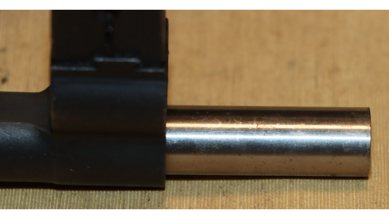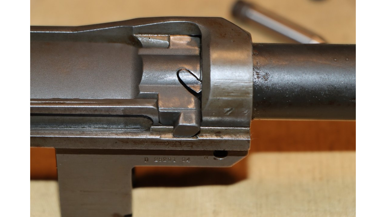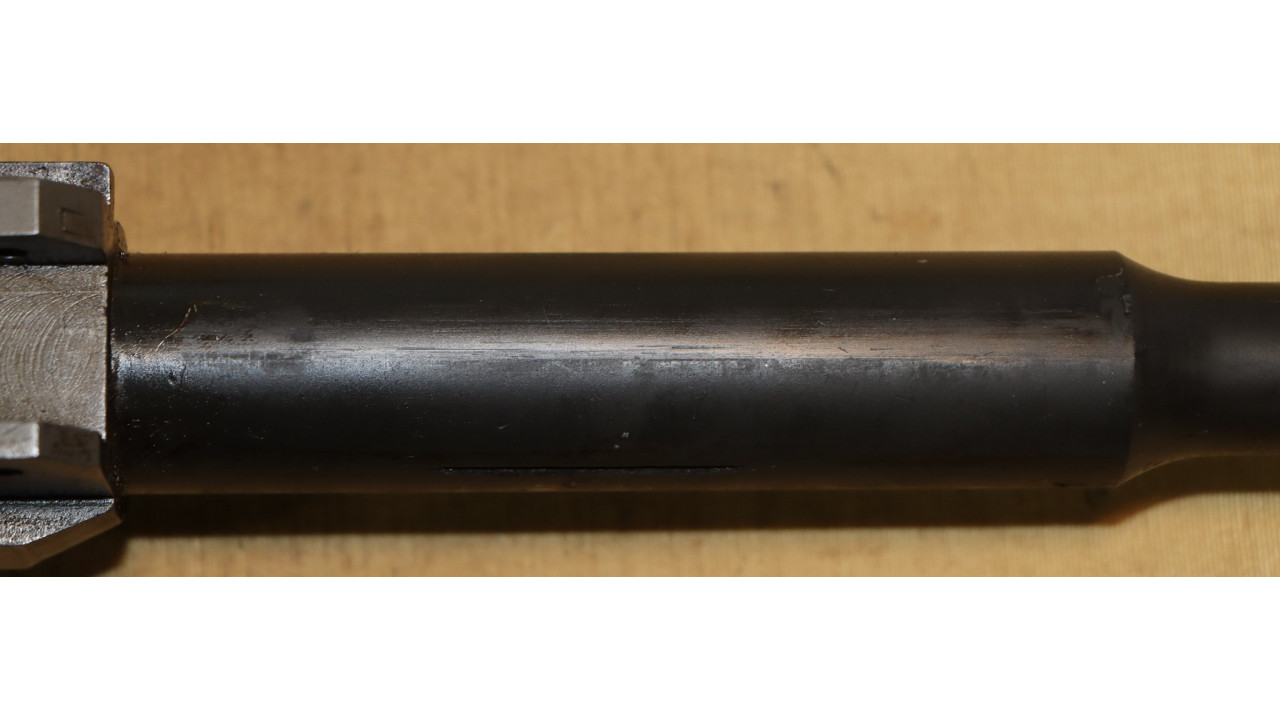The operating rod is the correct “9 SA” type that has the correct concave side. The operating rod remains in its original configuration and is unmodified or uncut. The operating rod retains the vast majority of its dark parkerized finish with wear noted at the friction points. The piston face is smooth with no pitting or chips and remains within specifications measuring .526 inches in diameter.