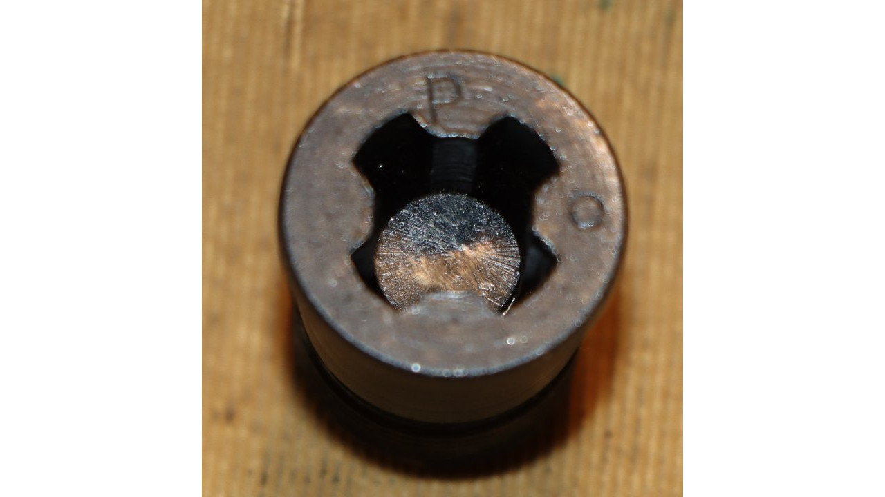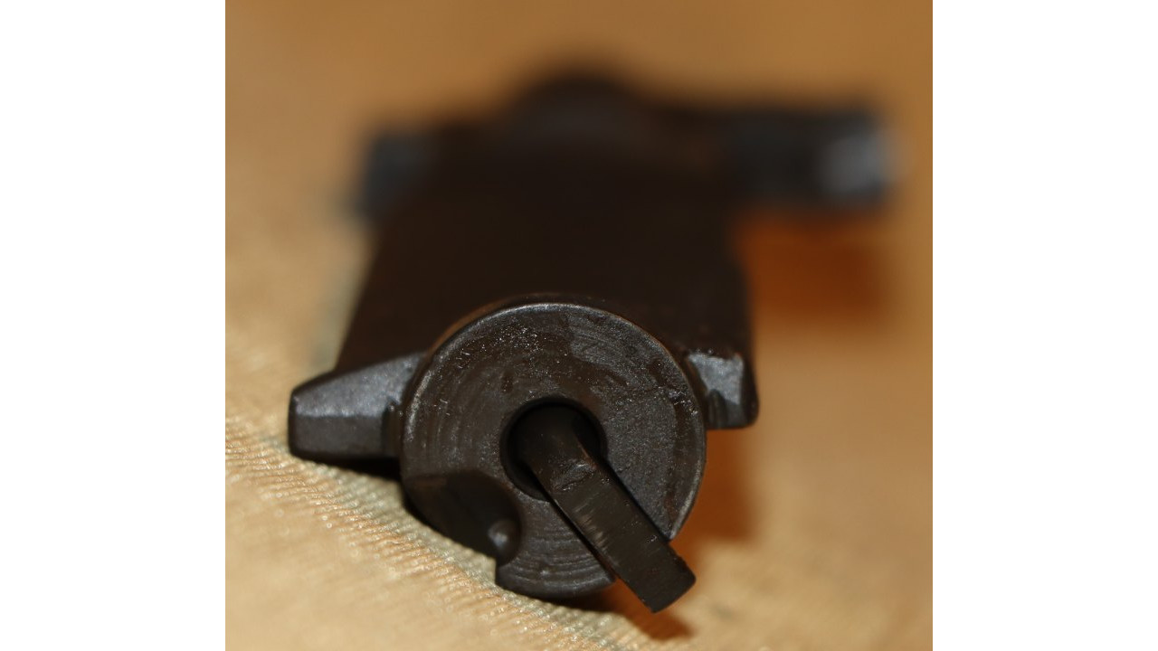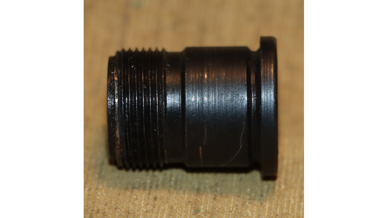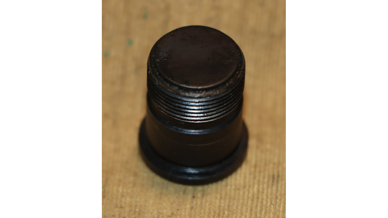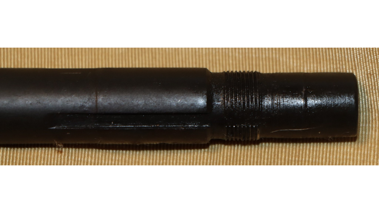 The gas cylinder lock is the correct Springfield type with chamfered face and no hump. The gas cylinder lock retains 95% of its original blackened finish. The threaded portion is very clean and exhibits no wear. The gas cylinder lock screw is the correct, and very fine condition, slotted type single slot type with poppet valve for grenade launcher use that retains all of its blacked finish on the face. The piston-facing end is in fine condition showing minimal wear. The threads are in mint condition as well. The face of the lock screw has a sans serif “P” at the 12 o’clock position and a small “o” at the 3 o’clock position, indicating this lock screw was manufactured by the Henry Owens Company in the Boston Ordnance District, which manufactured lock screws for Springfield M1s in this serial number range.