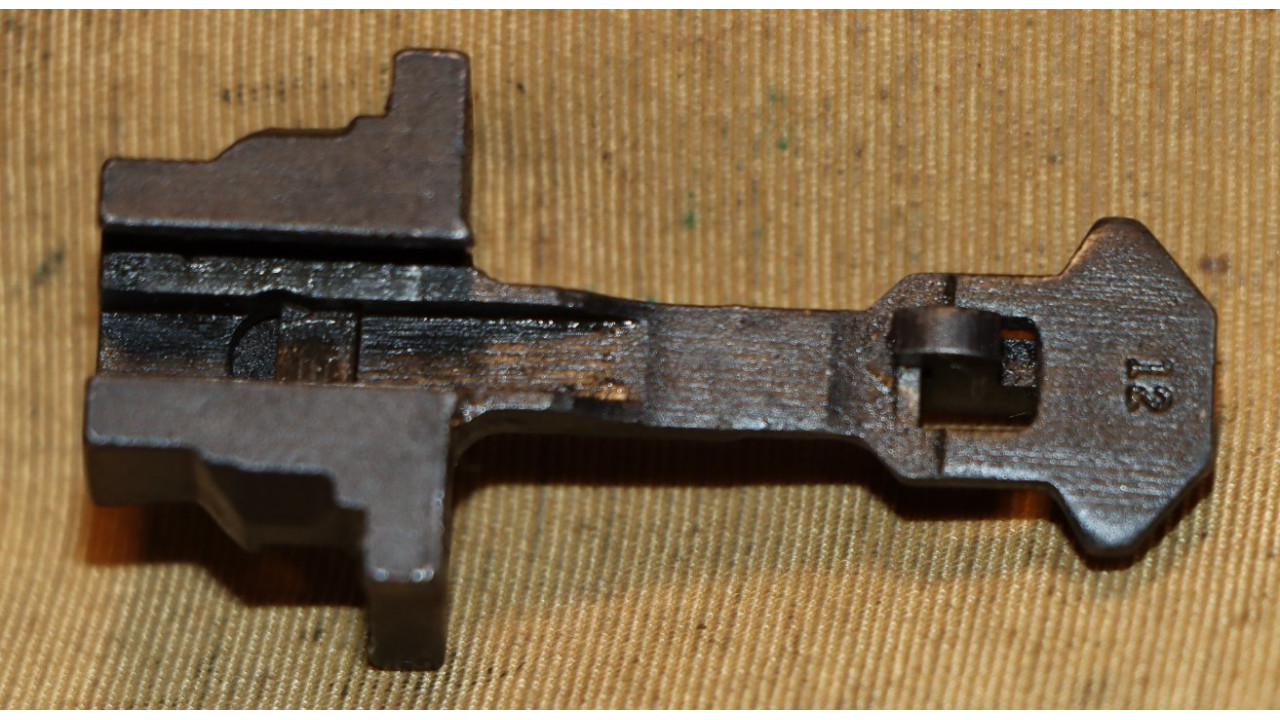 The operating rod catch is the correct Springfield second type that retains 98% of its original parkerized finish. The accelerator retains 98% of what appears to be its original blued finish. The front edges of the catch remain sharp. The follower is the correct Springfield type with “12” stamp on the bottom tail. The follower retains 98% of its original parkerized finish and the cartridge slide retains 98% of its parkerized finish.