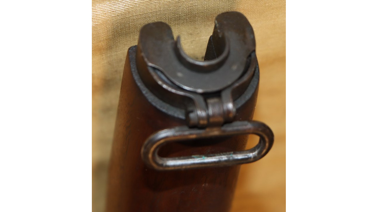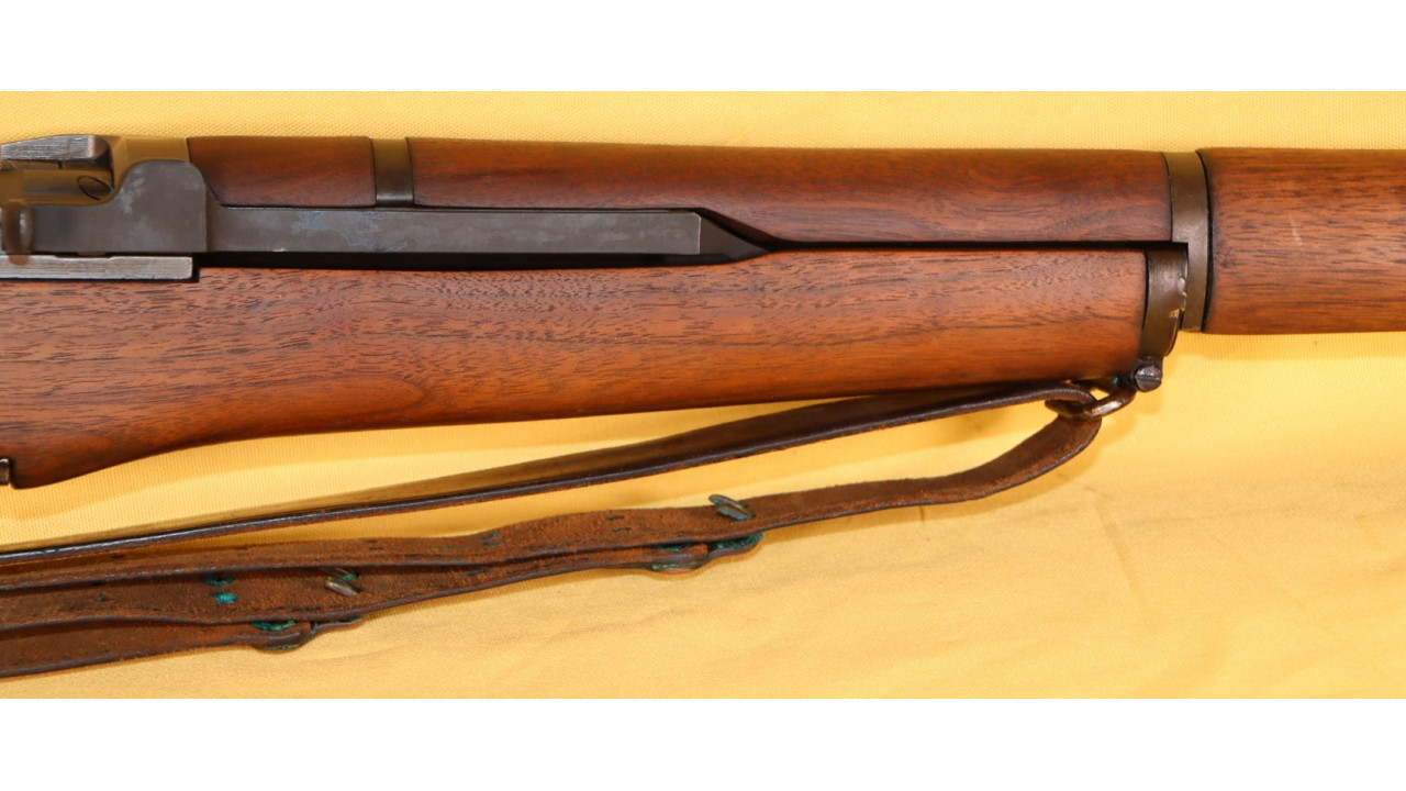 The rifle comes with a fine condition and original WWII Model 1907 leather sling. The hooks are the early but still correct brass types. There are no discernible makers marks on the sling. The leather is till supple along its entire length.