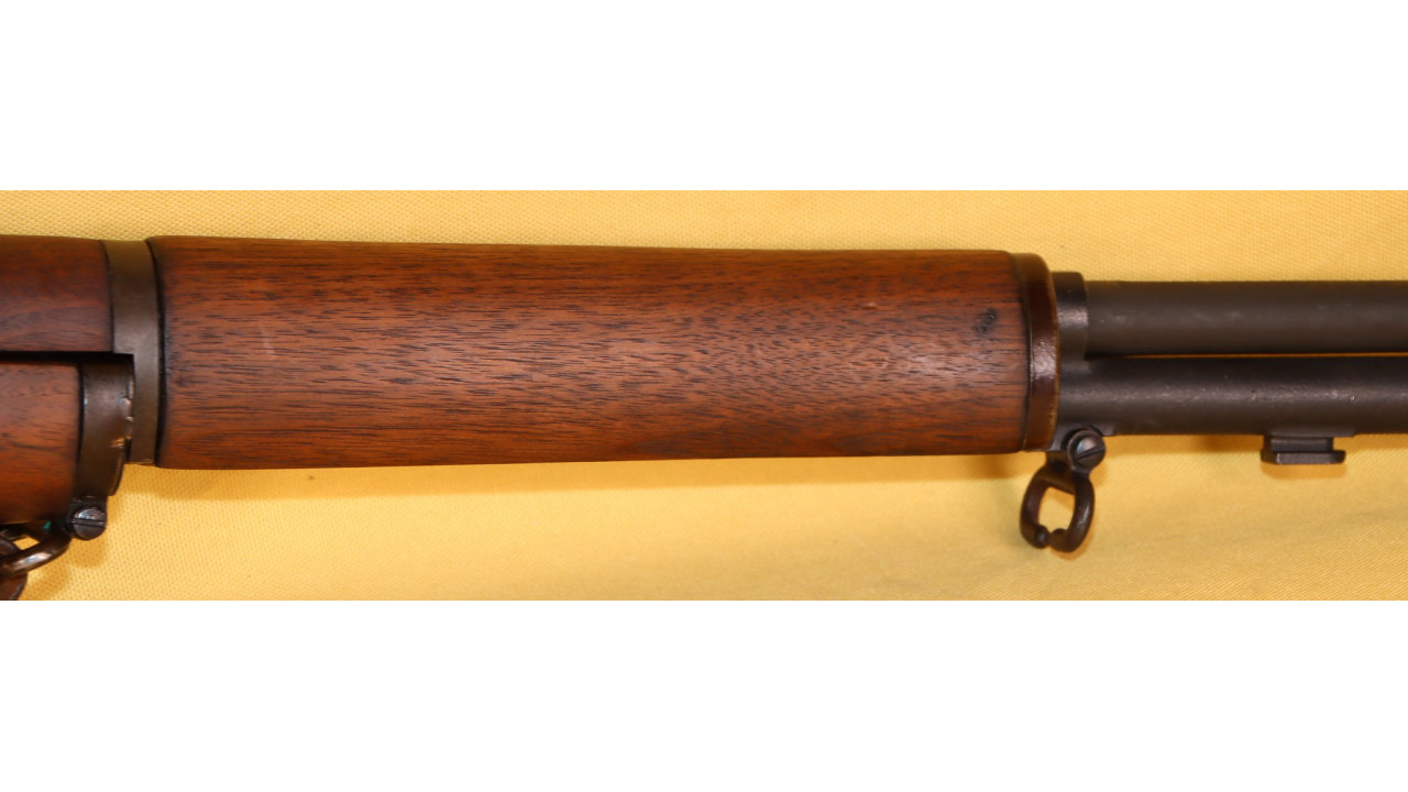 The lower band is the correct flat profile type that retains approximately 95% of its parkerized finish that is exhibiting a plum patina. The upper hand guard has the correct Springfield-characteristic relief cut on the right side. The rear hand guard band is the correct stamped, flat profile type that retains 99% of its original parkerized finish. The upper hand guard is in near mint condition with almost no dings or scratches and there are no cracks or chips noted.