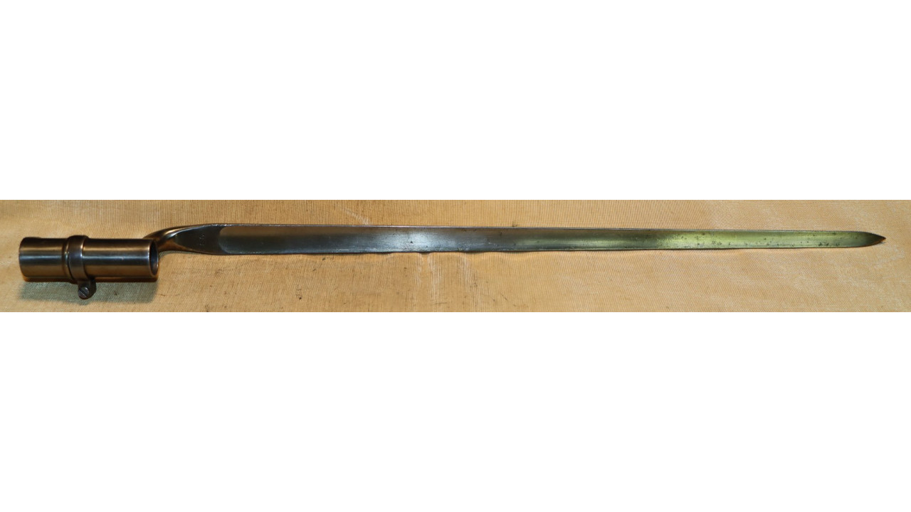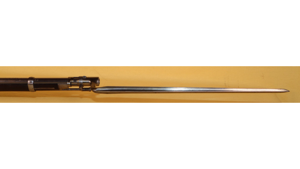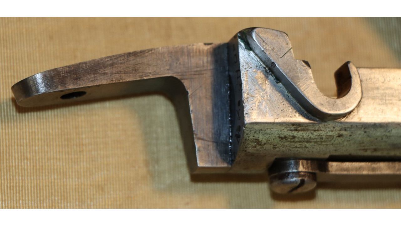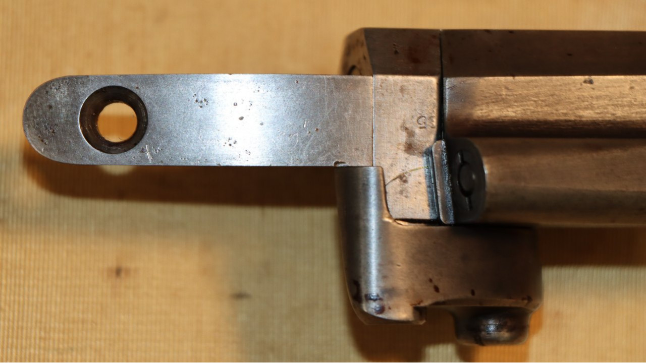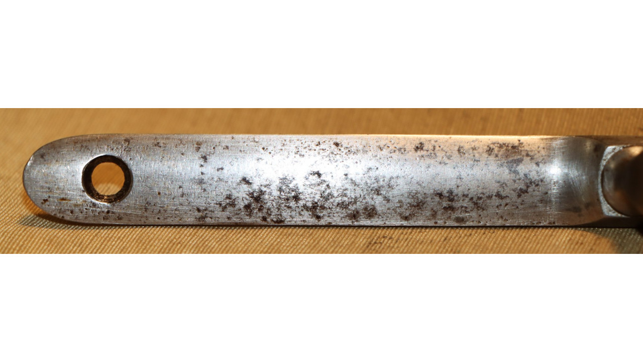 This rifle comes with an original Model 1855 Bayonet that is in very fine condition. Because the Model 1866 Rifle used original Civil War barrels with the original muzzle diameter, it was able to use original Civil War Model 1855 Bayonets without modifying them. The Socket is in very fine condition, retaining virtually all of its original national armory bright finish. The original Locking Ring is present and works perfectly. The ricasso is correctly marked with a crisp “US” stamp. The blade is also in very fine condition, retaining all of its original armory bright finish. The bayonet secures tightly to the barrel of this rifle.