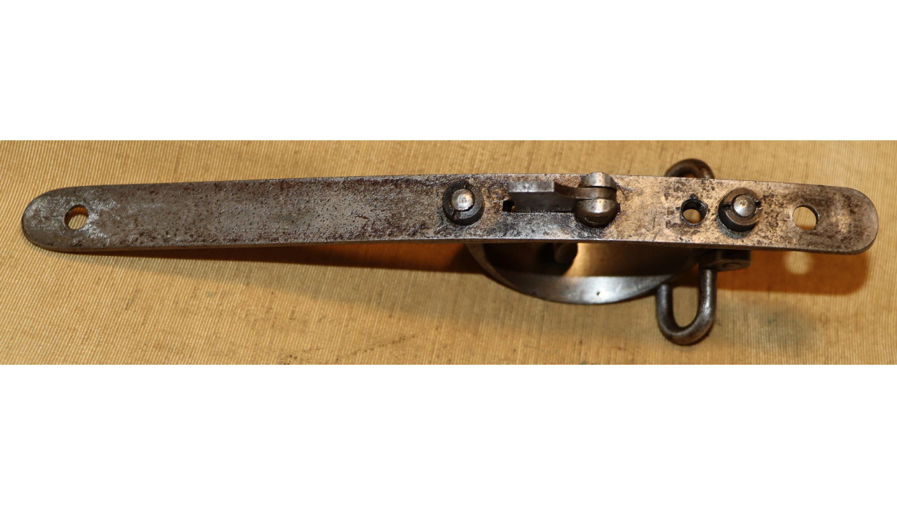 The Breech Block is in very fine condition and is the correct type with the flat-top firing pin housing or comb. The top surface of the Breech Block still retains virtually all of its original oil quenched blackened finish. The bottom of the Breech Block is the straight, cylindrical type that retains 99% of its original, dark blackened oil quenched finish. There is an “8” inspection stamp on the bottom of the Breech Block. The top, forward section of the Breech Block has a crisp "1866/small eagle head" stamp. There is, correctly, no sighting notch in the Breech Block Hinge, which is also unique among Springfield Trapdoor weapons.