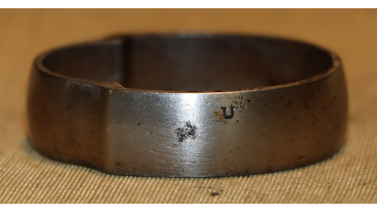 The Lower Barrel Band has the correct, serif "U" stamp on the right side and retains the majority of its National Armory Bright finish with only some small foxing present. The adjacent Band Spring is in fine condition. The Middle Barrel Band has the original Sling Swivel present and attached with a correct Split Shank Swivel that is retained by a flat head, single-slot Band Screw that is very slightly marred. The Middle Band has the correct serif "U" stamp on the right side, and it retains the majority of its original bright finish with moderate foxing present. The Middle Band Retaining Spring is present and is in fine condition.